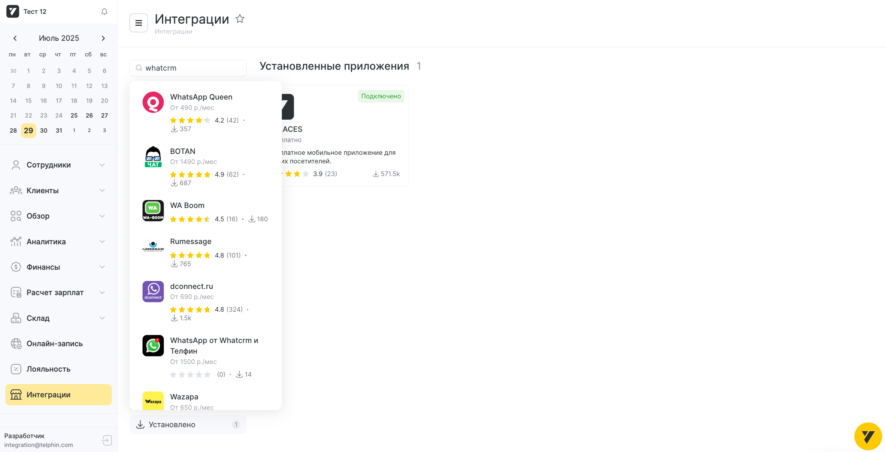 Зайдите в Интеграции YCLIENTS → Поиск
